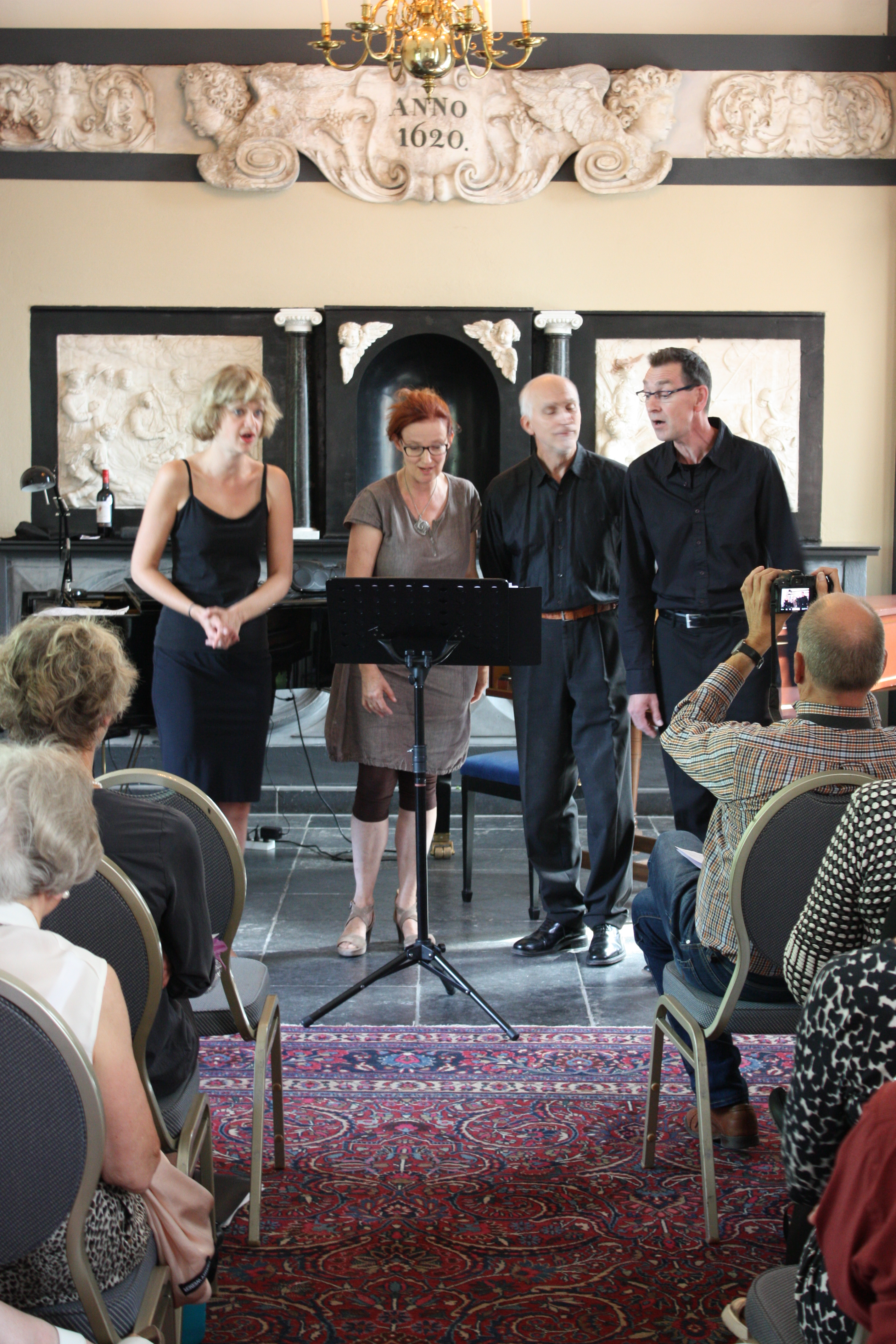 “Met inspirator/huiscomponist/tekstschrijver Frans van Hoek en geschoolde stemmen van Ien Bouwmans, Lieve van Tuijl, Peter Cornelissen en Peter Ruiter heb je echt wat in huis. Frans van Hoek zijn schrijfstijl was voor mij dè verrassing van deze middag. Hij laat je met zijn composities en teksten toeven in Renaissance- of Barokstijl (Chanson des Anges) en zet je haast ongemerkt met twee benen in deze tijd. Met lichte ironie bezong DRIEST het noodlottige einde van ‘Willy-John and Doodle-Jack in the Valley of No-mans-land’. ‘Eleison’ riep ‘Mistero Buffo’-achtige taferelen op. Ik was heel gelukkig met de door hen zo schitterend vertolkte Nederlandstalige nummers.”